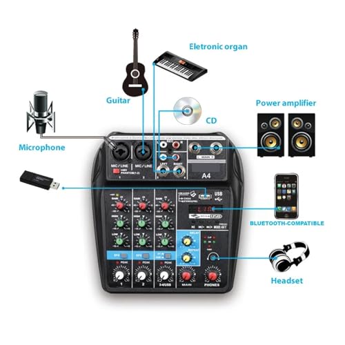 Plaats de eerste recensie voor “DJ-apparatuur Professionele 4-kanaals digitale mengkaart Microfoon Mobiele telefoon Live-uitzending Computeropname DJ Audio-apparatuur Geluidsregelaar”